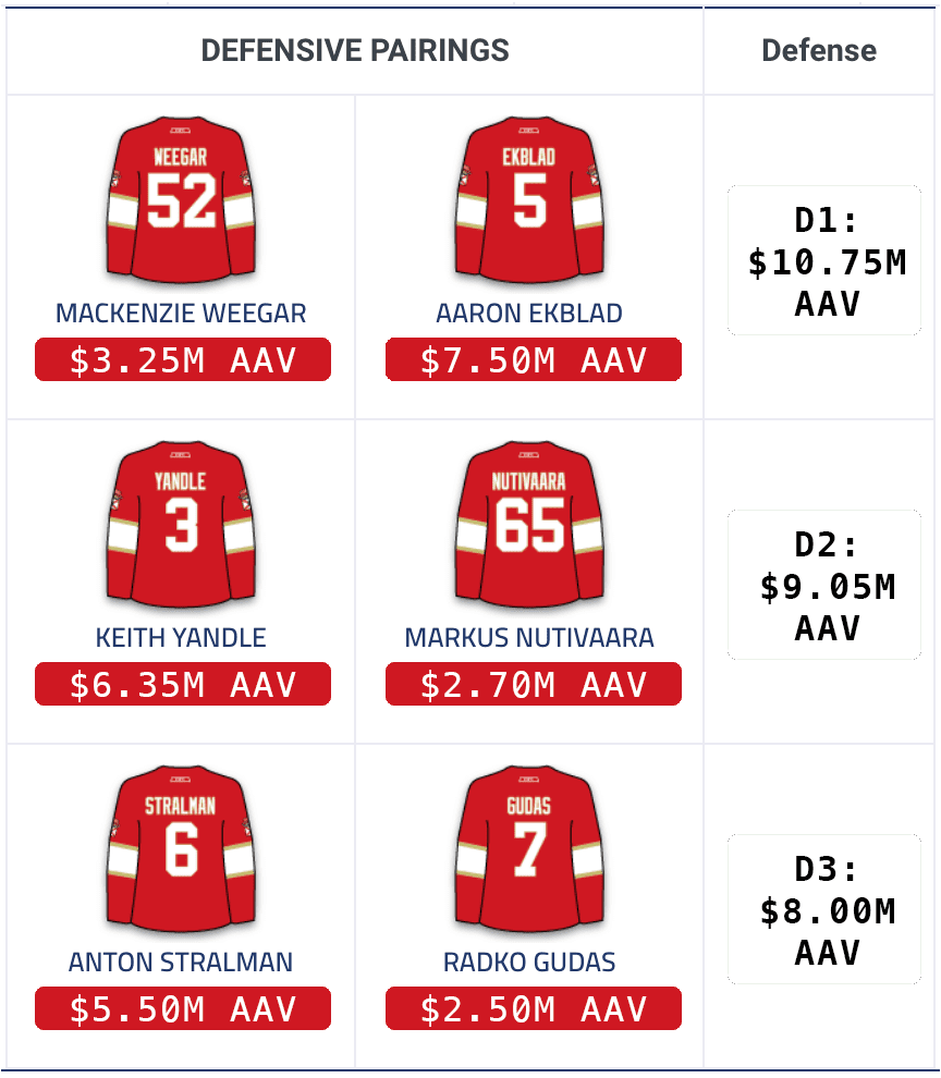 The Panthers’ blueline will look pretty similar to what it did last year. @Markus Nutivaara was acquired from the @Columbus Blue Jackets and is expected to replace Brown on the second pair with @Keith Yandle. @Radko Gudas was signed to a three-year contract and he’ll slide in for Matheson on the right-side.
