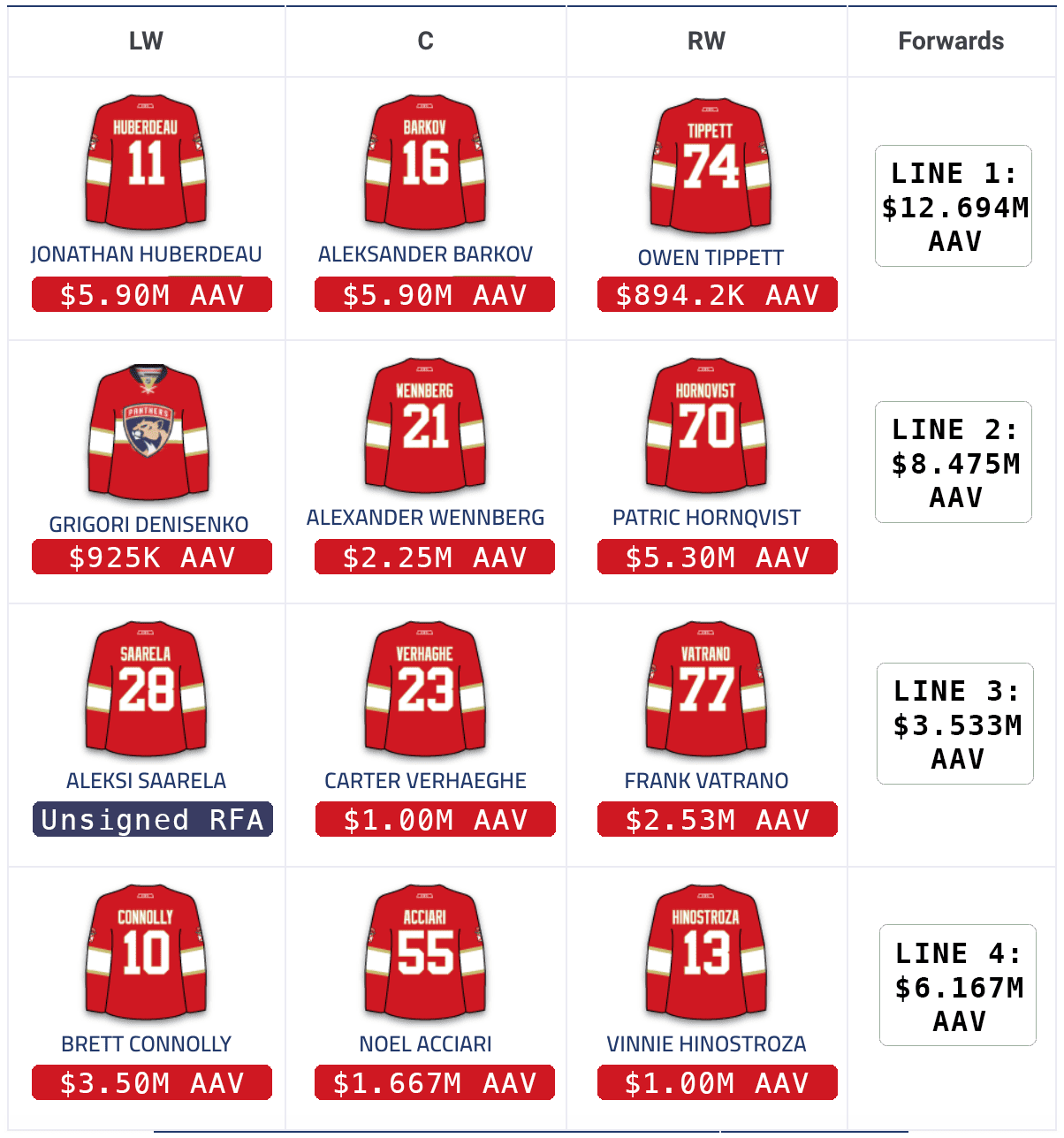 They took the total opposite approach this offseason, letting @Evgeni Dadonov, @Mike Hoffman, and @Erik Haula walk in free agency, trading @Josh Brown, @Mike Matheson and @Colton Sceviour for salary savings. As it stands now, the Panthers have ≈$6.493 million in cap-space [per PuckPedia.com].