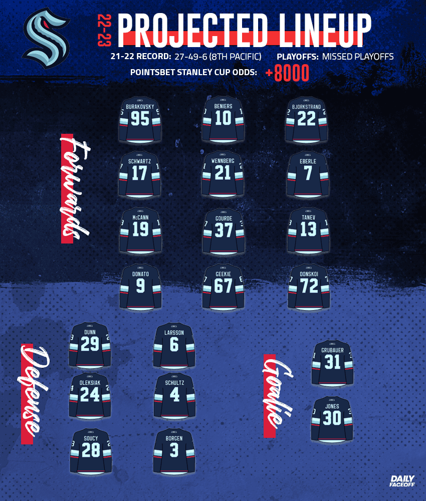Could rookie Shane Wright or Matty Beniers make the team this year? Beniers is a near lock, but Wright will be a big question mark. Both are highly talented two-way players. Beniers looked NHL ready in his 10-game sample late last season.