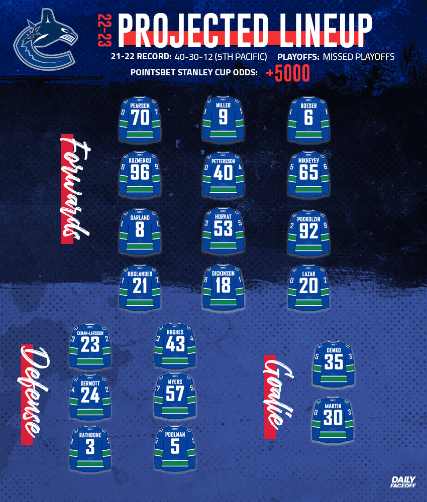 The Canucks had a fairly top-heavy offense that finished 18th in the league with 249 goals in 2021-22.