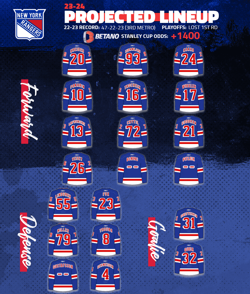The Rangers entered 2022-23 as a popular Stanley Cup pick, and for good reason. They were fresh off a 110-point season and an Eastern Conference Final appearance. Their stacked roster included the reigning Vezina Trophy winner in Igor Shesterkin, a 50-goal scorer in Chris Kreider and an all-world defenseman in Adam Fox. They landed one of the top free-agent centers in Vincent Trocheck. Their championship window had arrived.