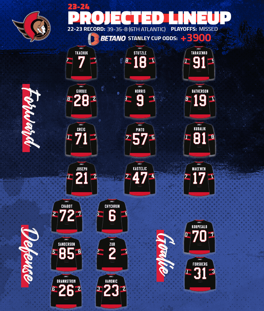 The bottom six was one of Ottawa’s biggest deficiencies last year and will need to improve for the team to make the playoffs this year. The Senators signed Czech veteran Jiri Smejkal to an entry-level deal, Zack MacEwen to a three-year deal, as well as depth pieces Matthew Highmore and Bokondji Imama in an attempt to shore up their depth at the bottom of the lineup. Either way, for the bottom six to be successful they need Pinto signed and ready to go by the start of the season. It’s also possible that a younger player like Ridly Greig or Egor Sokolov could crack the lineup and play a role on the third or fourth line.