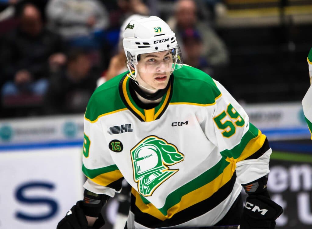 An offensive defenseman standing at 6-foot-2 and 205 pounds? Sure! Dionicio had 50 points in 50 games between Niagara and Windsor this year, playing top-line minutes with the Spitfires. His play suffered last year on a Niagara team that was a total mess this year, but he was a leader on a competitive Spitfires group that unfortunately fell flat in the playoffs. He’s not a quick skater, which takes him down a few pegs, but his brain, skill and physicality make him intriguing. He’s a depth prospect at this point until he gets his own-zone play fixed up.