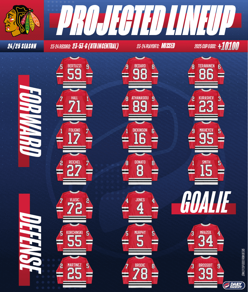 On the bright side, the 18-year-old Bedard looked like the real deal (22 G, 61 P in 69 GP) and picked up the Calder Trophy for his efforts. With their next franchise player in place and a host of prospects set to join him over the next two seasons, the Blackhawks can focus on playing like a real NHL team again in 2024-25.
