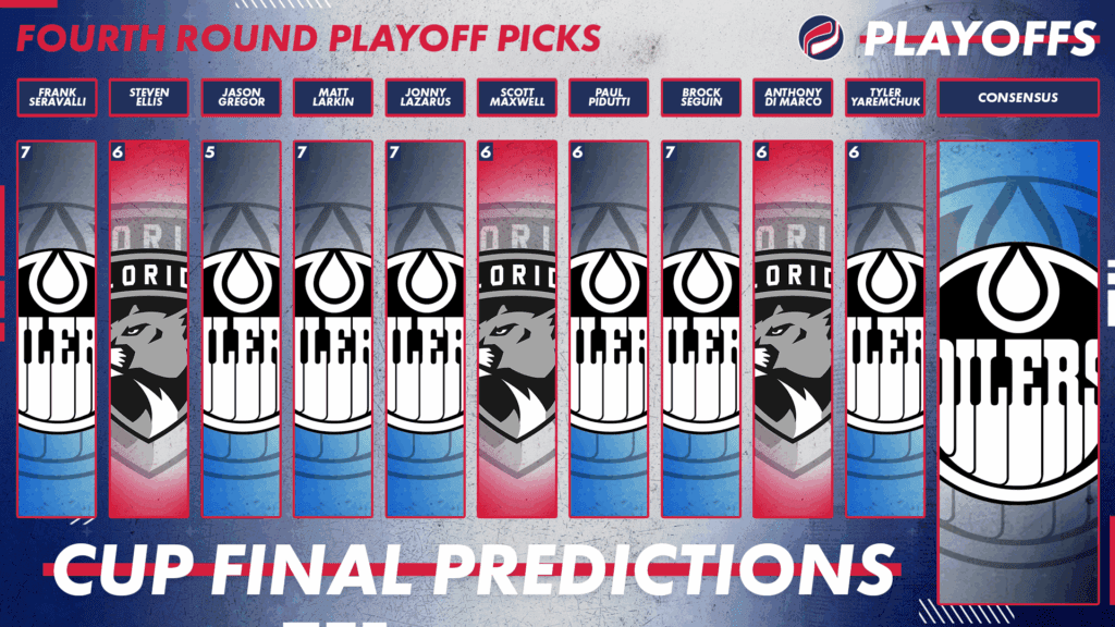 BROCK SEGUIN (Oilers in 7): There’s very little to separate these two teams. Both teams are great at 5v5 and have elite power plays. It will be an exceptionally tight series, just as it was a year ago. The tiebreaker for me is Edmonton having home-ice advantage. It played a pivotal role a year ago, with the home team winning five of seven games. At home, Florida is so good at matching up with the Aleksander Barkov and Anton Lundell lines, but Edmonton will be able to get the matchups they want for McDavid and Draisaitl in Edmonton, and that could be the difference. Unsurprisingly, McDavid and Draisaitl have been much more productive on home ice throughout the playoffs, where Edmonton is 6-1 so far.