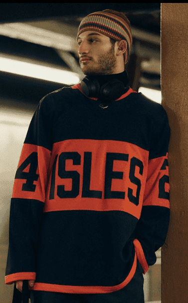 The Islanders, who have only played in one outdoor game (2014 at Yankee Stadium), are wearing blue jerseys with a large orange stripe with the world “ISLES” in it, in one of the largest chest stripes adidas has ever made for the NHL.