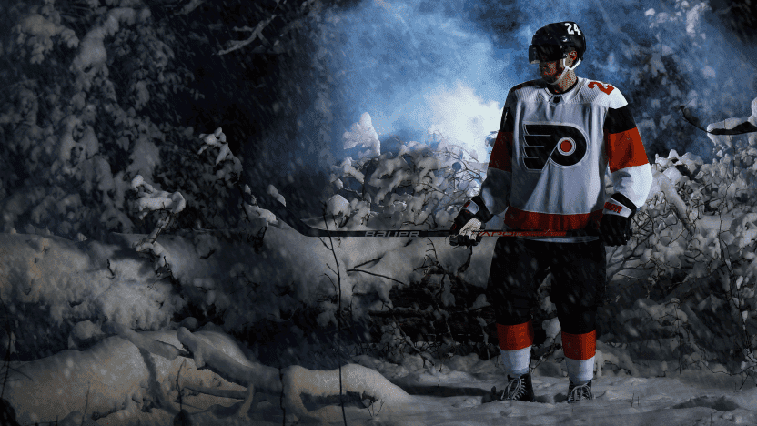 The Flyers, who will be playing in their sixth outdoor game, will wear white sweaters with burnt orange on the sleeves. The name plates will stretch all the way around the sweater, creating sleeve stripes, with the Flyers logo on the front.