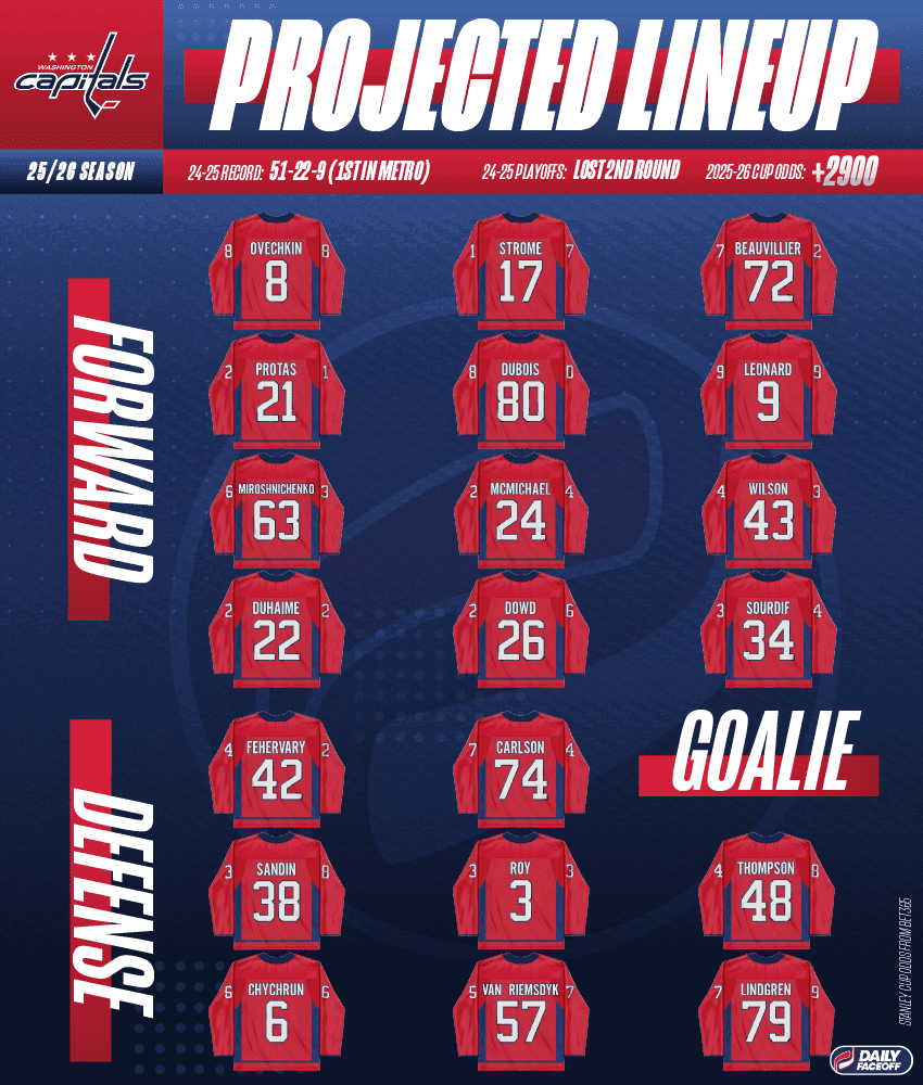 The offseason saw longtime Caps Nicklas Backstrom and T.J. Oshie retire; Darcy Kuemper, Nick Jensen and Max Pacioretty depart; and Pierre-Luc Dubois, Jakob Chychrun, Matt Roy, Andrew Mangiapane, Logan Thompson, Brandon Duhaime and Taylor Raddysh enter the fold. Washington was clearly looking to finish up their on-the-fly retool and not only give Ovi the offensive insulation he needed to break the goal record, but also maybe get one more shot at a Stanley Cup before he retires.