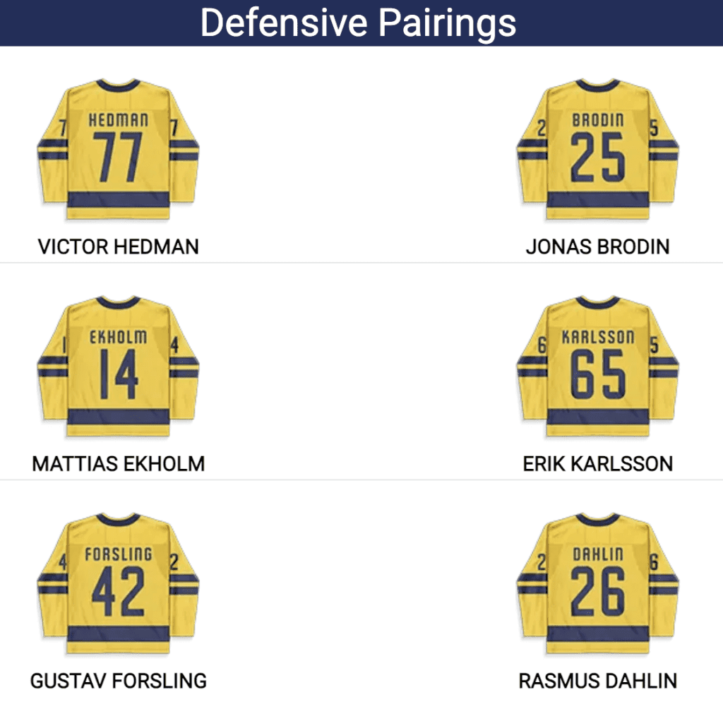 A team with this defensive core certainly has a chance to win in any matchup, even though at this point the Swedes obviously have failed to secure a win.