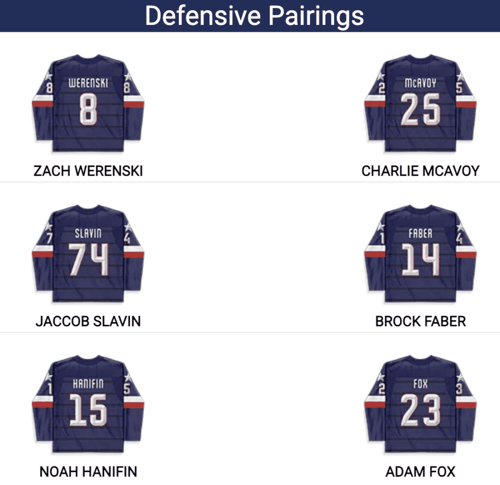 Even without reigning Norris Trophy winner Quinn Hughes, Team USA’s defensive core features no weak links, and looked to be a clear strength versus Finland. The USA’s defense core is undersized relative to what Canada is offering, but features a number of defenders that excel at driving play the other way with quality puck movement and skating ability.