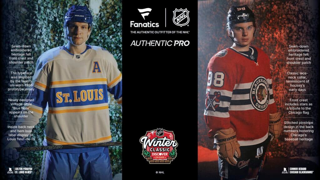 On Wednesday, the league released the first images of the jerseys that the Chicago Blackhawks and St. Louis Blues will wear at the 2025 NHL Winter Classic. Fanatics, the league’s authentic outfitter, showcases both teams’ heritages while tracing “NHL Winter Classic” at the bottom of the hem of each sweater.