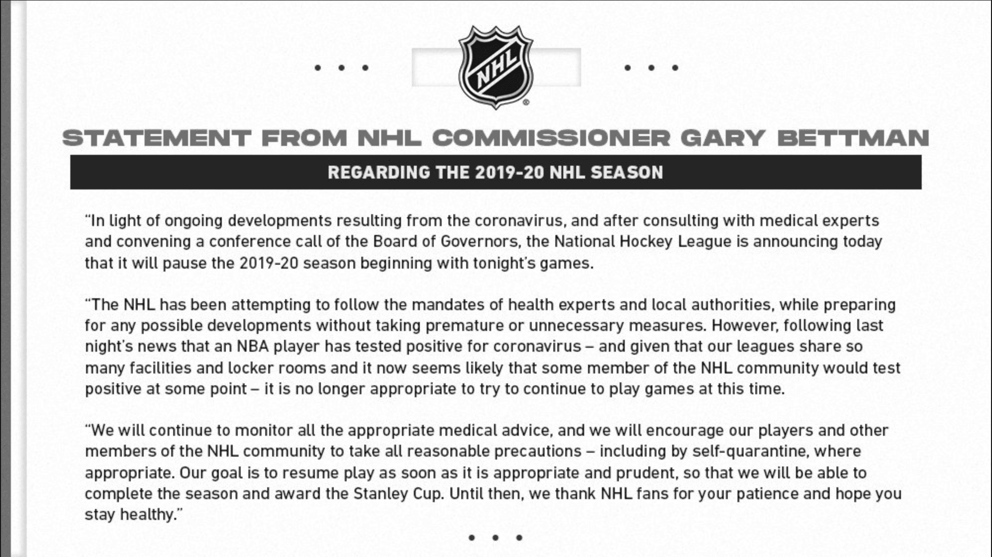 Due to the evolving Coronavirus (COVID-19) pandemic, the NHL has officially paused the 2020 season.