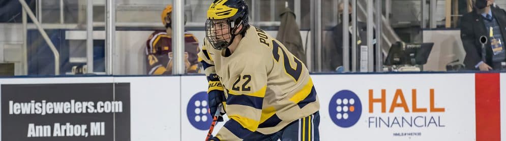 Last year, he played at the University of Michigan in the NCAA where he scored three goals and 16 points in 26 games. He also won a gold medal with team Canada at the 2021 Men’s World Championships where he played a significant role on the blue line scoring three points in 10 games.