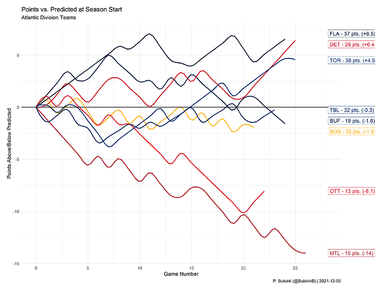 Bulsink: Using data to review the first quarter of the NHL season and project the remaining schedule
