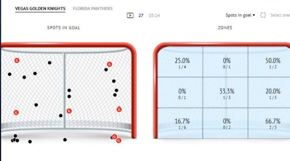 When you look at Hill’s play, and he’s been awesome, you do have to look at the offenses of these two teams and why they’re scoring. When you look at the shot charts from last night, over half of Vegas’s attempts were up high; their goals come in the top half of the net. When you take a look at where the Florida Panthers are chucking pucks, Adin Hill is not going to have a tough night when the great majority of those shots are at those big 6 ‘4 legs of his.