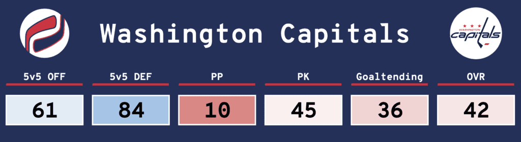 The Capitals are in first place in the Metropolitan Division but they’re 19th in DFO’s ranking. The team’s power play has been lagging, which is a bit of a shock given the Caps employ Alex Ovechkin.