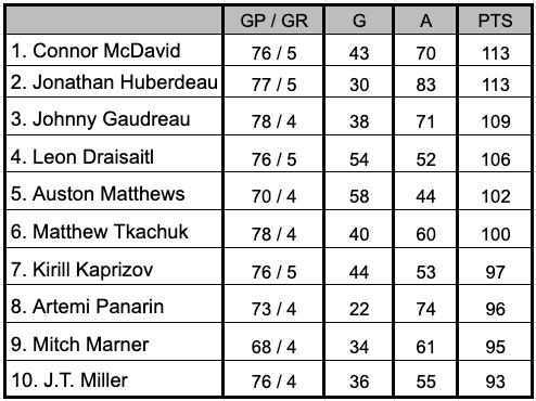 NHL Scoring Lead and the Race for 100