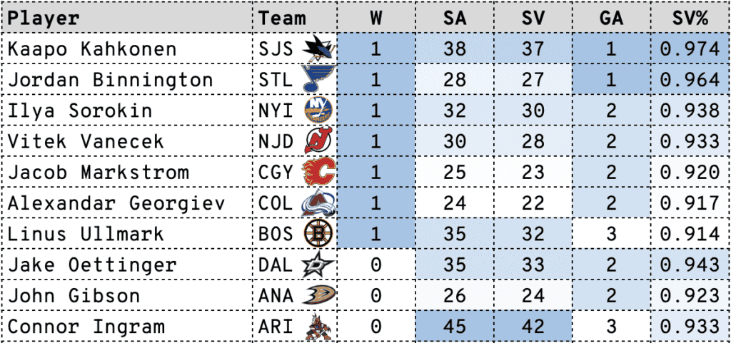 Juuse Saros stopped 24 of 27 shots (.889 SV%), and all three shootout attempts to move to 7-6-2 as Nashville beat Arizona 4-3 in a shootout. Nashville’s powerplay was the key to their success as Mikael Granlund picked up a powerplay goal (2) and assist (13), followed by Roman Josi picking up his ninth point (2G/7A) in his last six games with a powerplay goal (4) and assist (12). Connor Ingram had his best start of the season, stopping 42 of 45 shots (.933 SV%) while picking up his third straight loss to move to 1-4-1. Nick Schmaltz had a promising return after missing 15 games due to a rib injury, leading the Coyotes with five SOG across 18:56 TOI. Nick Bjustad was surprisingly the Coyotes’ offensive leader on the night, scoring a goal (2) and adding two assists (4,5) to snap a six-game scoreless streak.