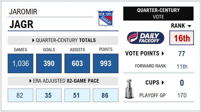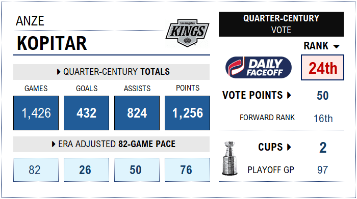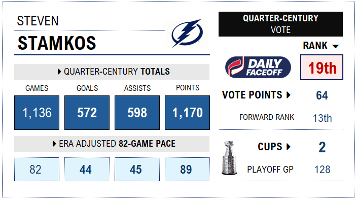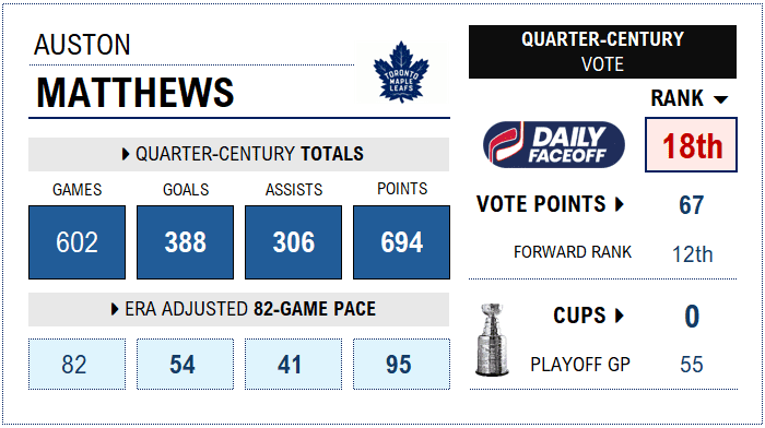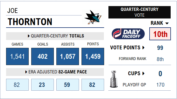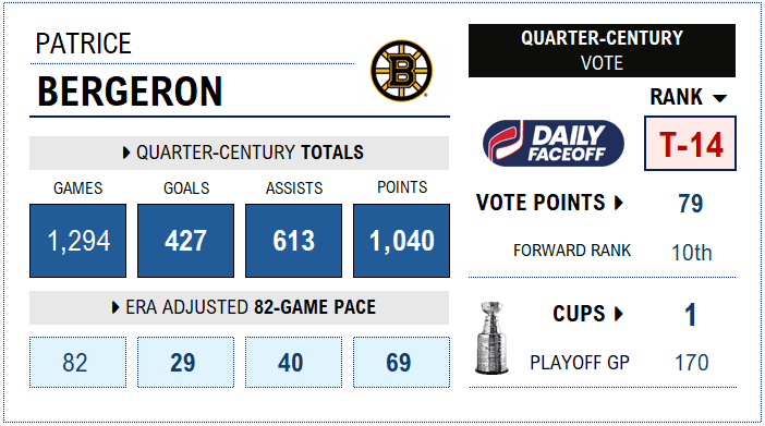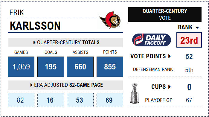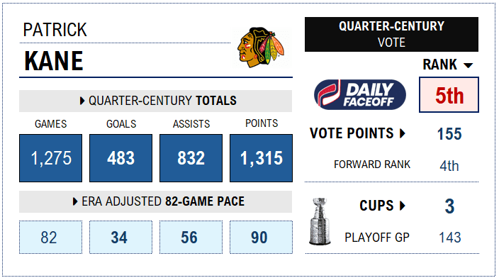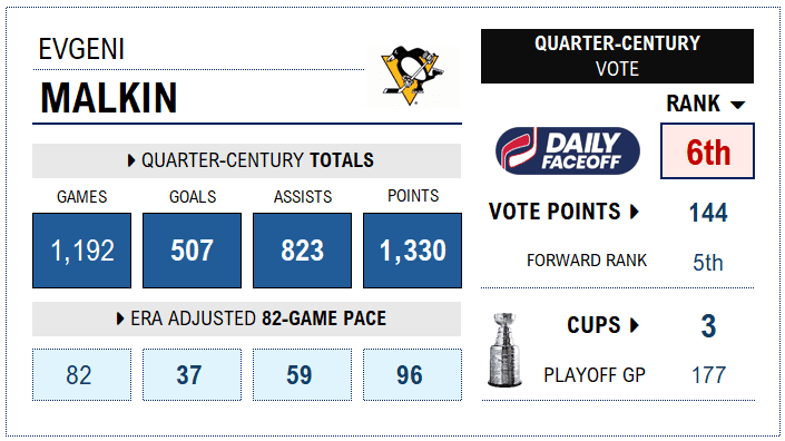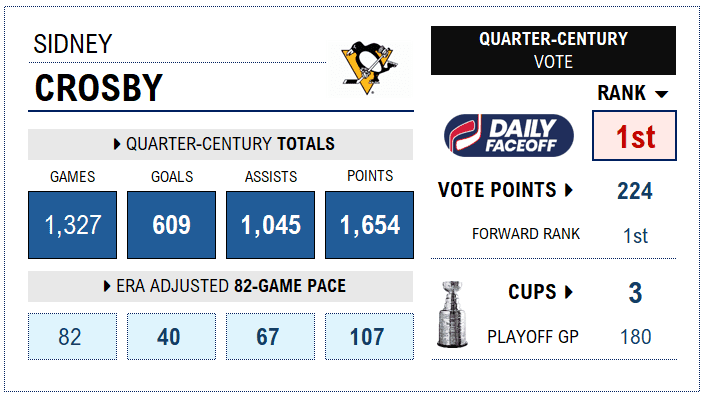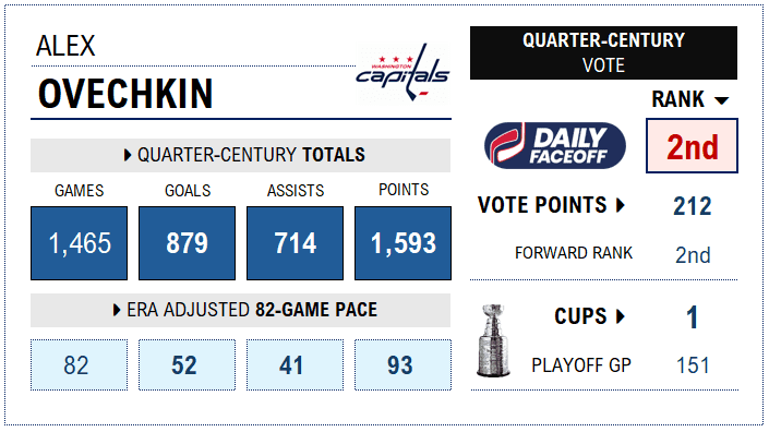 Now, let’s break down the top 25. Presenting Daily Faceoff’s Quarter Century team, rated based on performances from 2000 onward. Special thanks to Paul Pidutti for contributing the graphics for each player depicting what they accomplished over that span.