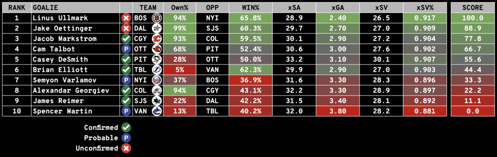 The Notebook includes everything you need to know to set your Season-Long and Daily Fantasy Lineups: including Injuries, Projected Lines and Pairings, Starting Goalie Rankings, and Value Picks (DFS).