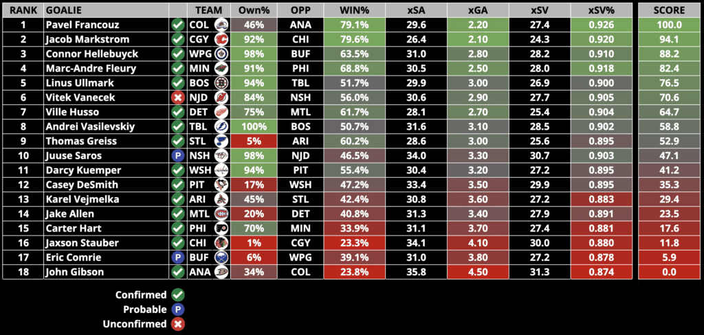 Goalie Rankings