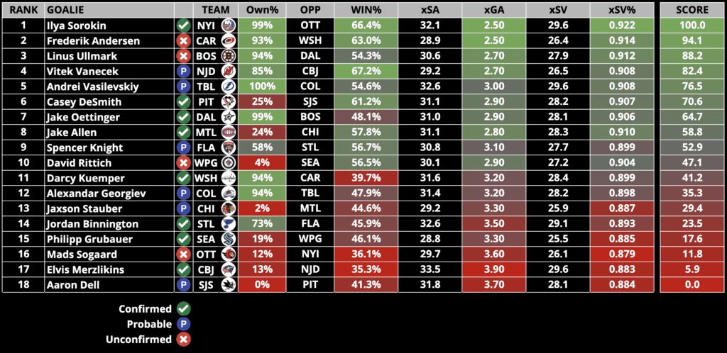 The Notebook includes everything you need to know to set your Season-Long and Daily Fantasy Lineups: including Injuries, Projected Lines and Pairings, Starting Goalie Rankings, and Value Picks (DFS).