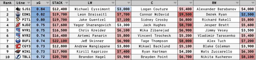 | Eyssimont – Couture – Barabanov Gregor – Hertl – Kaut Bonino – Sturm – Labanc Lindblom – Lorentz – Svechnikov ——————————————————— Harrington – Karlsson Vlasic – Benning Ferraro – Cicek | Granlund – Novak – Duchene Niederreiter – Glass – Tomasino Smith – Sissons – Jeannot Trenin – Parssinen – Sherwood ——————————————————— McDonagh – Josi Ekholm – Lauzon Gravel – Fabbro |