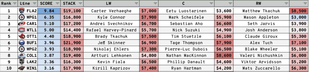 | Connor – Scheifele – Appleton Ehlers – Dubois – Wheeler Barron – Lowry – Kuhlman Maenalanen – Stenlund – Gagner ——————————————————— Morrissey – DeMelo Dillon – Pionk Samberg – Schmidt | Lekhonen – MacKinnon – Nichushkin Rodrigues – Compher – Rantanen Malgin – Newhook- O’Connor Cogliano – Nieto ——————————————————— Girard – Toews Byram – Manson Englund – MacDermid Hunt |