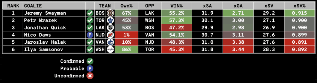 Goalie Rankings
