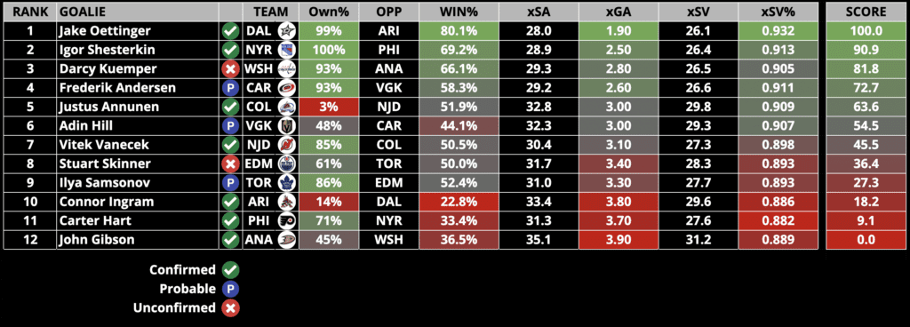 Goalie Rankings