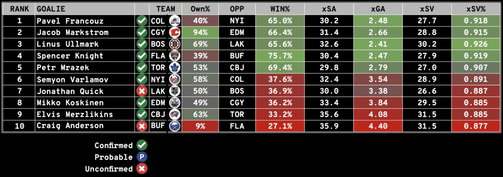 Goalie Rankings