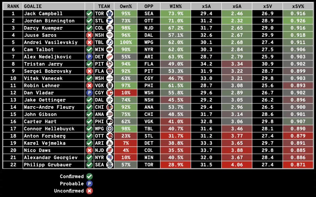 The Notebook includes everything you need to know to set your Season-Long and Daily Fantasy Lineups: including Injuries, Projected Lines and Pairings, Starting Goalie Rankings, Value Picks (DFS), and previews from our DFS Premium Package.