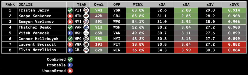 The Notebook includes everything you need to know to set your Season-Long and Daily Fantasy Lineups: including Injuries, Projected Lines and Pairings, Starting Goalie Rankings, Value Picks (DFS), and previews from our DFS Premium Package.