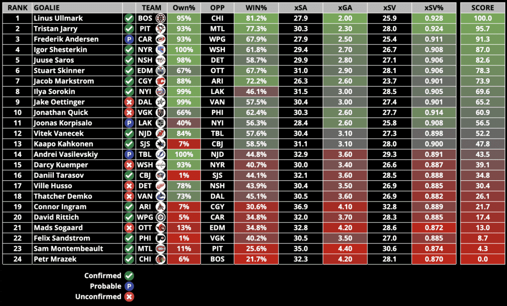 Goalie Rankings