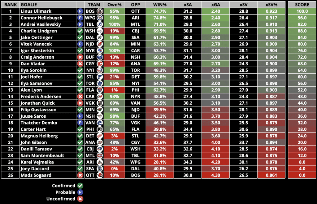 The Notebook includes everything you need to know to set your Season-Long and Daily Fantasy Lineups: including Injuries, Projected Lines and Pairings, Starting Goalie Rankings, and Value Picks (DFS).