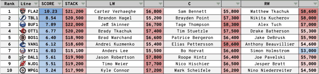 | Farabee – Cates – Tippett Hayes – Laughton – Allison Lemieux – Frost – Foerster Deslauriers – van Riemsdyk ——————————————————— Sanheim – Ristolainen Provorov – York Seeler – DeAngelo Zamula | Luostarinen – Barkov – Reinhart Verhaeghe – Lundell – Tkachuk Lomberg – E.Staal – Duclair Cousins – White – Smith ——————————————————— Forsling – Ekblad M.Staal – Montour Mahura – Gudas |