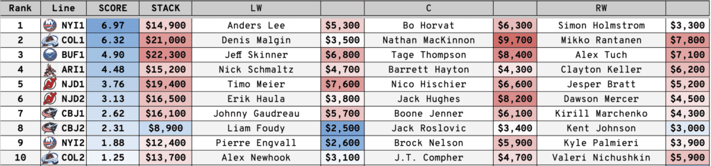 | Gaudreau – Jenner – Marchenko Foudy – Roslovic – Johnson Robinson – Kuraly – Olivier Pederson – McKown – Bemstrom ——————————————————— Boqvist – Gudbranson Berni – Peeke Bayreuther – Blankenburg | Lee – Horvat – Holmstrom Engvall – Nelson – Palmieri Parise – Pageau – Fasching Martin – Cizikas – Clutterbuck ——————————————————— Pelech – Mayfield Romanov – Pulock Bolduc – Dobson |