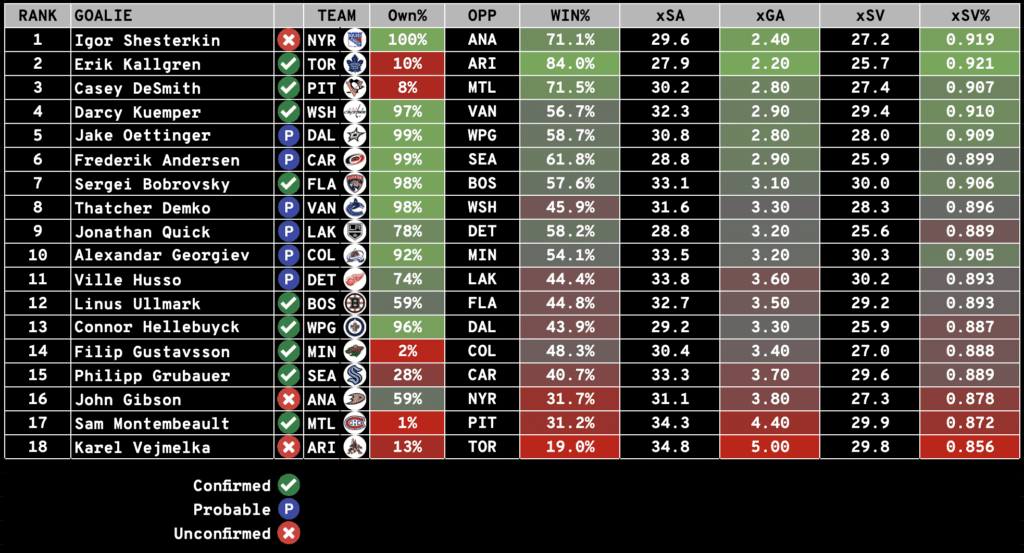 The Notebook includes everything you need to know to set your Season-Long and Daily Fantasy Lineups: including Injuries, Projected Lines and Pairings, Starting Goalie Rankings, and Value Picks (DFS).