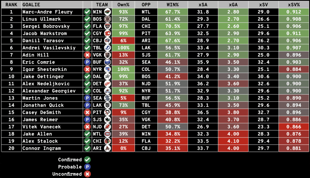 The Notebook includes everything you need to know to set your Season-Long and Daily Fantasy Lineups: including Injuries, Projected Lines and Pairings, Starting Goalie Rankings, and Value Picks (DFS).