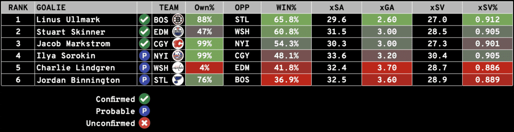 The Notebook includes everything you need to know to set your Season-Long and Daily Fantasy Lineups: including Injuries, Projected Lines and Pairings, Starting Goalie Rankings, and Value Picks (DFS).