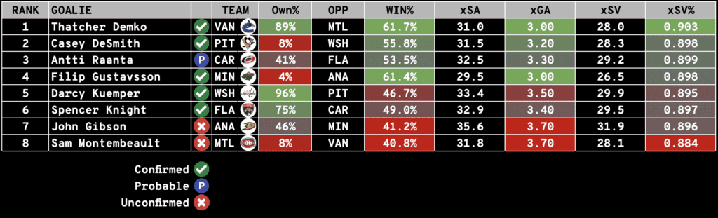 The Notebook includes everything you need to know to set your Season-Long and Daily Fantasy Lineups: including Injuries, Projected Lines and Pairings, Starting Goalie Rankings, and Value Picks (DFS).