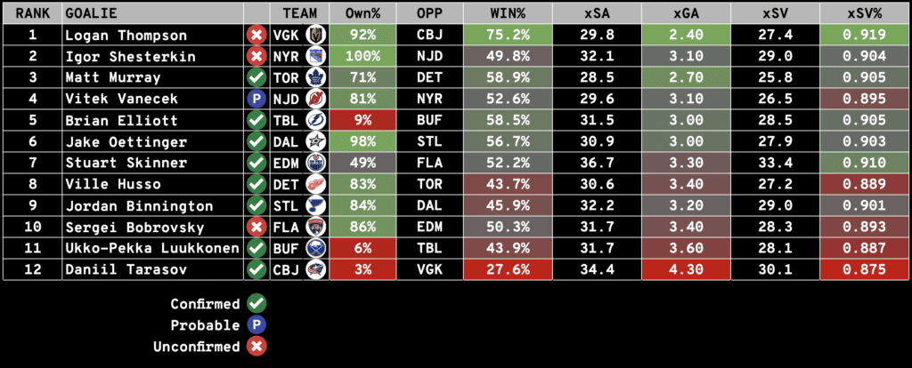 The Notebook includes everything you need to know to set your Season-Long and Daily Fantasy Lineups: including Injuries, Projected Lines and Pairings, Starting Goalie Rankings, and Value Picks (DFS).