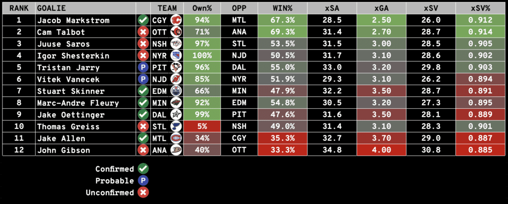 The Notebook includes everything you need to know to set your Season-Long and Daily Fantasy Lineups: including Injuries, Projected Lines and Pairings, Starting Goalie Rankings, and Value Picks (DFS).