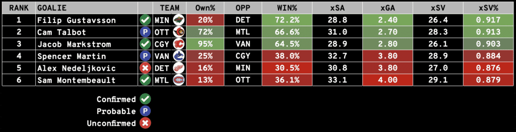 The Notebook includes everything you need to know to set your Season-Long and Daily Fantasy Lineups: including Injuries, Projected Lines and Pairings, Starting Goalie Rankings, and Value Picks (DFS).