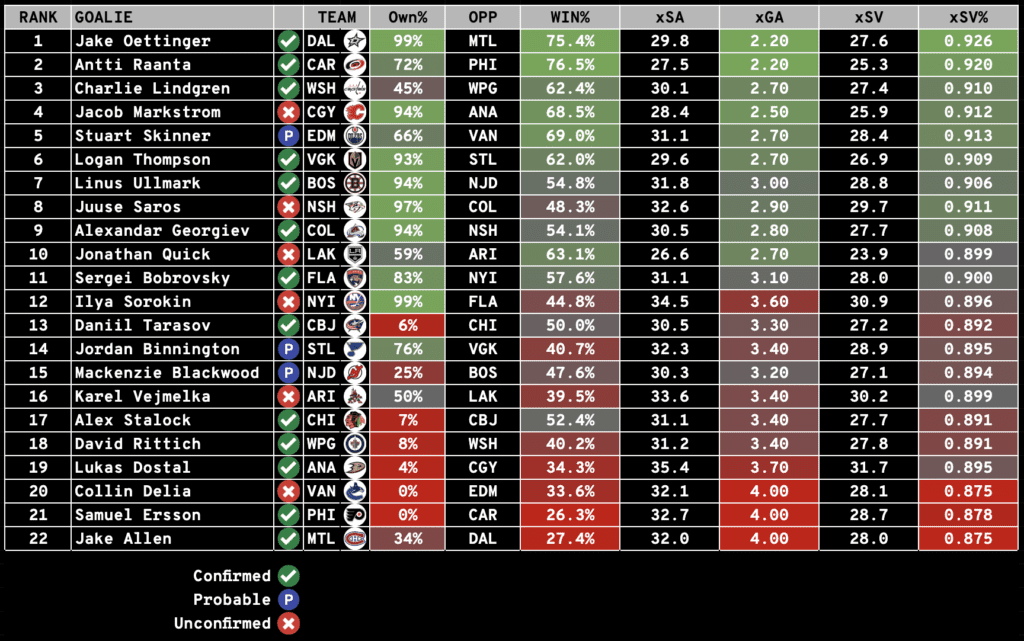 The Notebook includes everything you need to know to set your Season-Long and Daily Fantasy Lineups: including Injuries, Projected Lines and Pairings, Starting Goalie Rankings, and Value Picks (DFS).