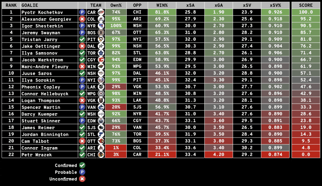 Goalie Rankings