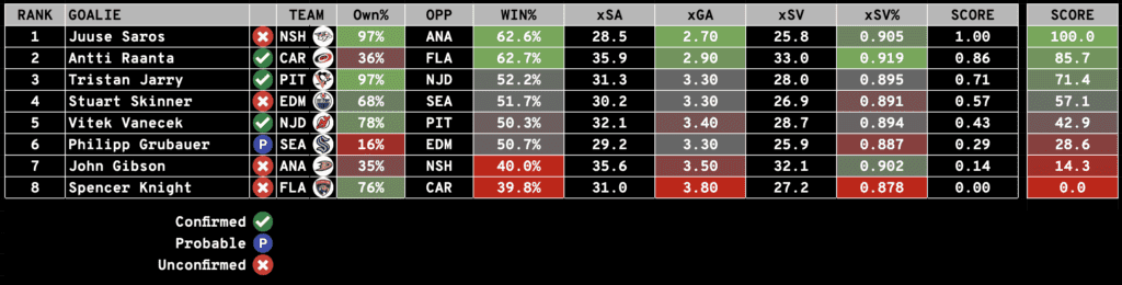 The Notebook includes everything you need to know to set your Season-Long and Daily Fantasy Lineups: including Injuries, Projected Lines and Pairings, Starting Goalie Rankings, and Value Picks (DFS).