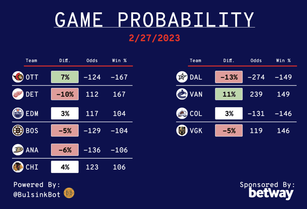 I will also provide some analysis on the best bets and update this post throughout the day to point out big injury news, lineup changes, and backup goalies starting.