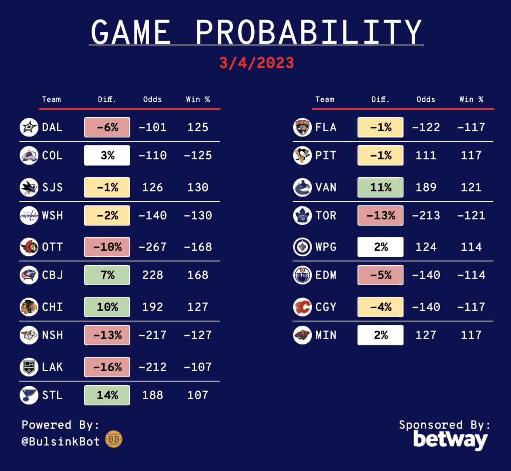 I will also provide some analysis on the best bets and update this post throughout the day to point out big injury news, lineup changes, and backup goalies starting.