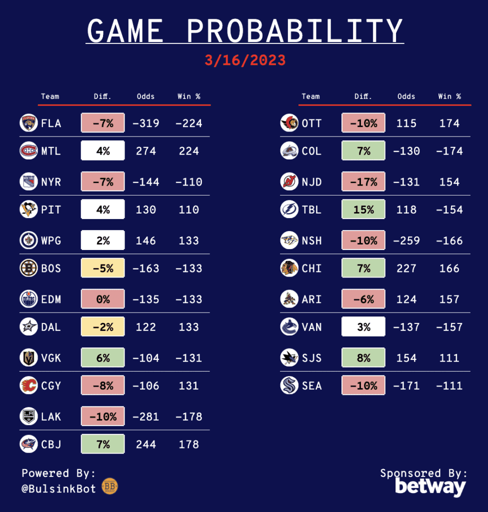 Daily NHL Betting Guide – 03/16/23